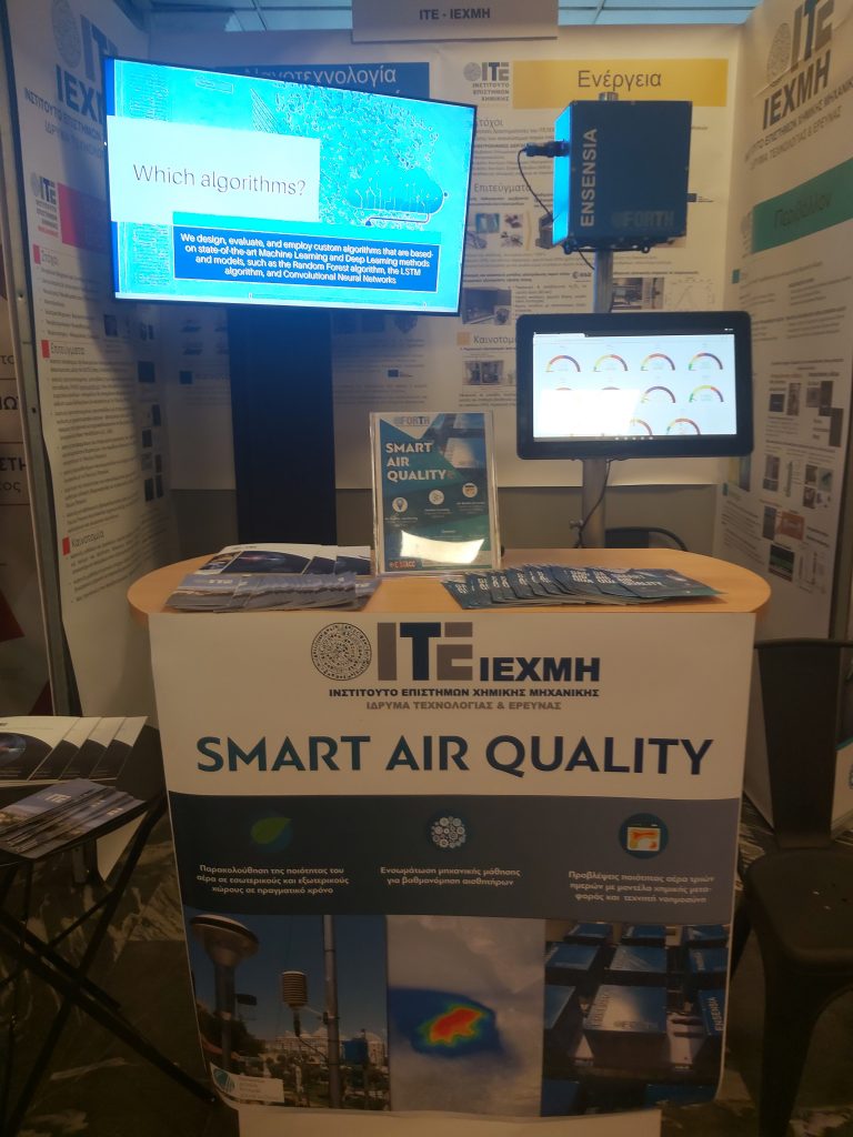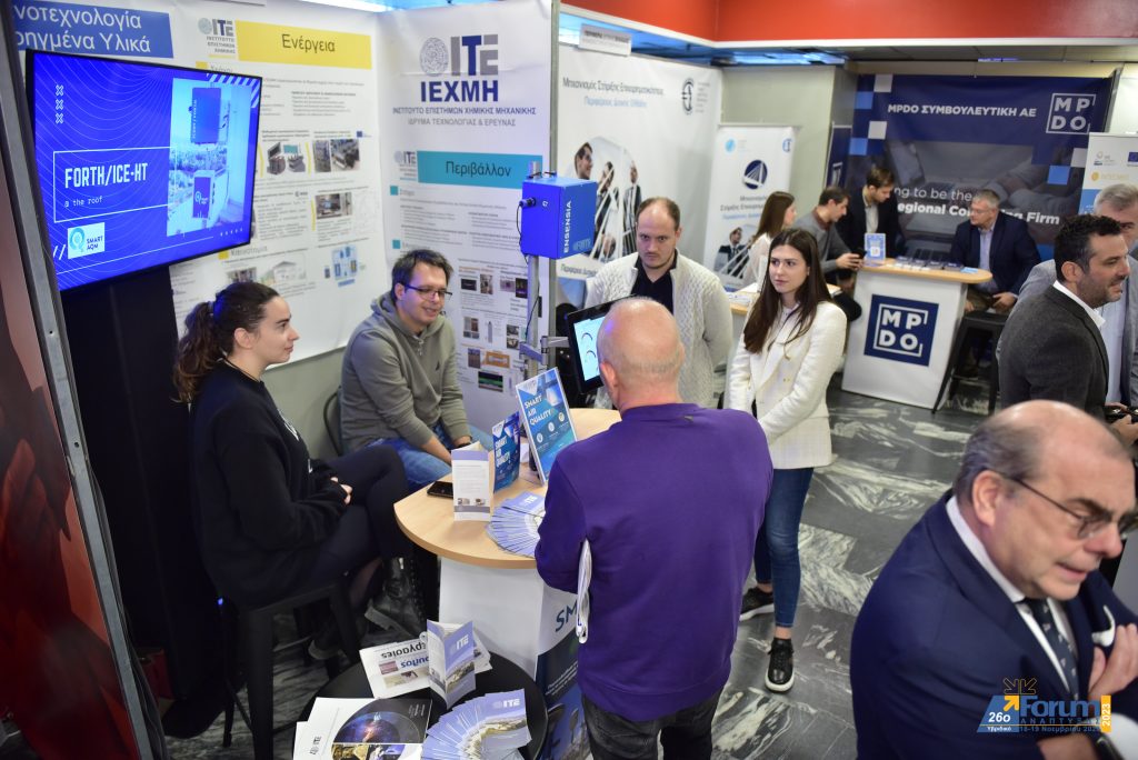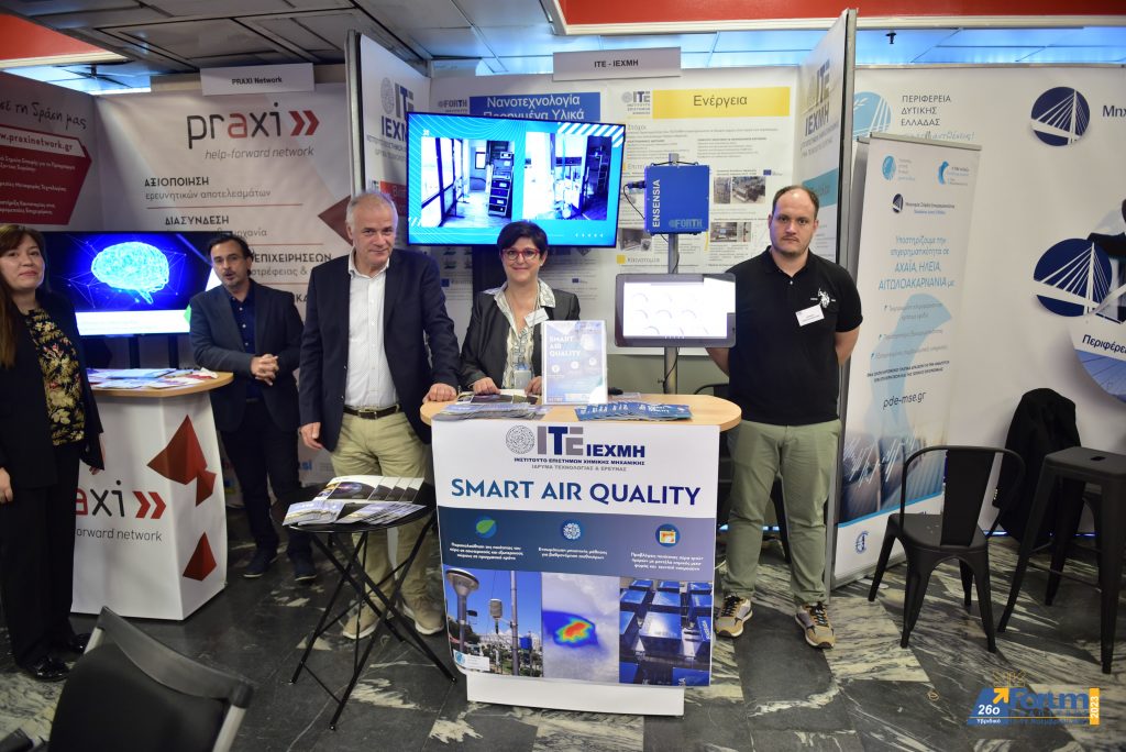 FORTH/ICE-HT participated with an exhibition booth in the 26th Development Forum, which took place on November 18-19, 2023, at the “Astir” Hotel in Patras. The institute participated with the exhibit “ENSENSIA: Air Quality Monitoring Station by FORTH/ICEHT“, which is an Intelligent System for Air Quality Monitoring and Forecasting (SmartAQ), both for outdoor and indoor applications. It measures and predicts concentrations of pollutants in gaseous phase (NO2, NO, SO2, CO, O3, VOCs, etc.) and air pollutants in particulate phase (PM2.5), as well as their chemical composition.