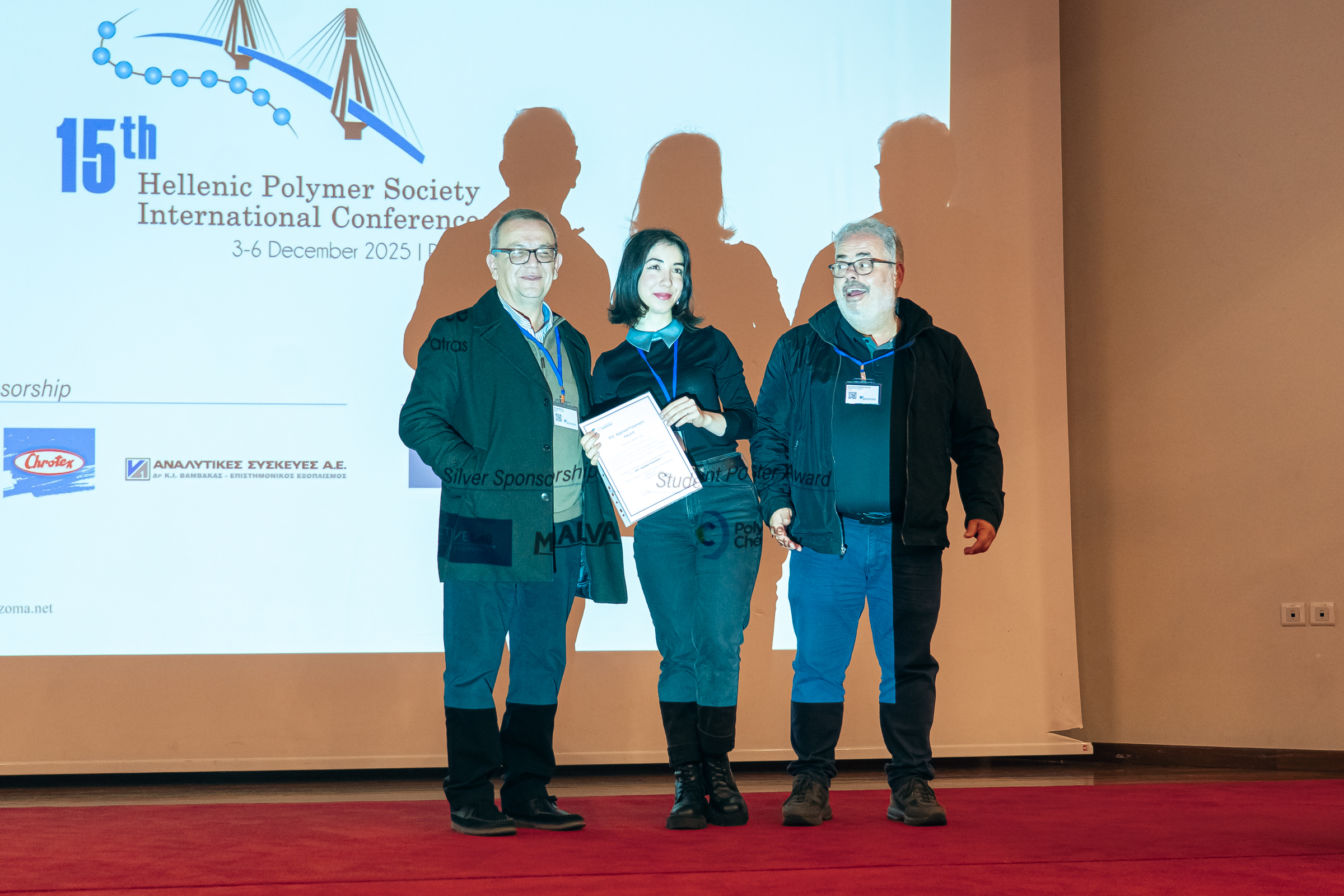 The 15th Hellenic Polymer Society International Conference (Polyconf15) concluded with great success in Patras, from December 3 to 6, 2025. The Institute of Chemical Engineering Sciences of the Foundation for Research and Technology-Hellas (FORTH/ICE-HT) proudly served as a co-organizer of this major event (https://polyconf15.gr/).